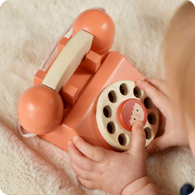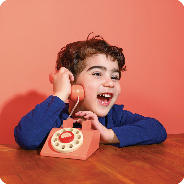 經典懷舊的轉盤式電話,拿起話筒,用手指撥動數字旋轉盤,讓孩子模擬打電話的情境,也可以認識數字。
